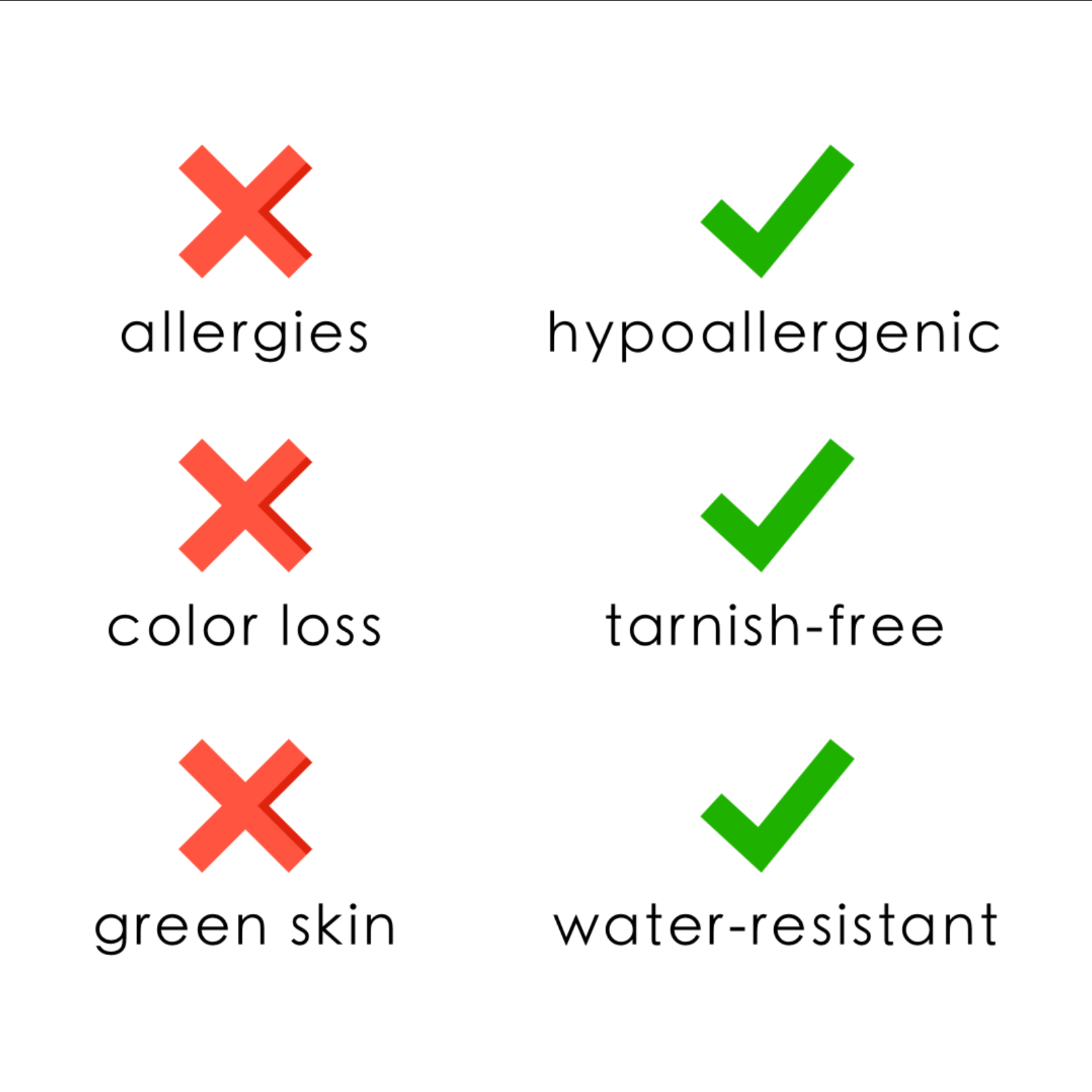 Wir verwenden für unsere Schmuckstücke hochwertigen Edelstahl, um eine lange Haltbarkeit und ein schönes, dauerhaftes Finish zu gewährleisten. Dieses Material trägt dazu bei, das elegante Aussehen Ihrer Stücke über die Zeit zu erhalten.
