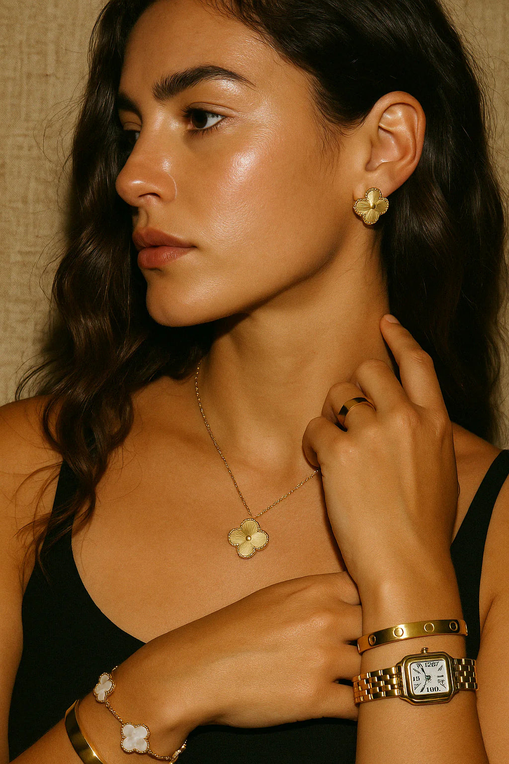 Unsere Schmuckstücke aus hochwertigem Edelstahl mit 18K-Goldplattierung vereinen zeitlose Eleganz mit moderner Haltbarkeit. Sie sind wasserfest, nickelfrei und hypoallergen – ideal für den täglichen Gebrauch und besondere Anlässe.