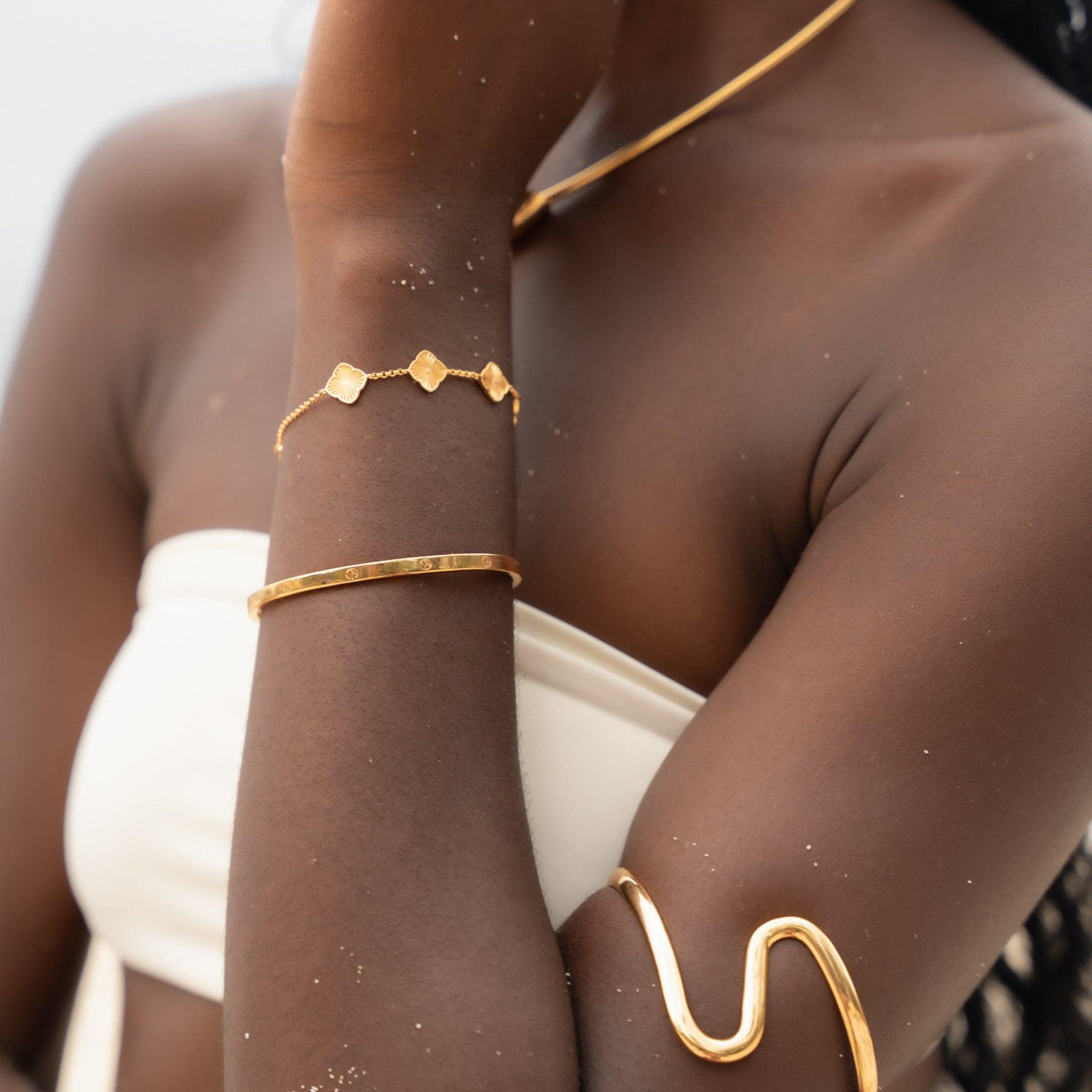 Unsere Schmuckstücke aus hochwertigem Edelstahl mit 18K-Goldplattierung vereinen zeitlose Eleganz mit moderner Haltbarkeit. Sie sind wasserfest, nickelfrei und hypoallergen – ideal für den täglichen Gebrauch und besondere Anlässe.